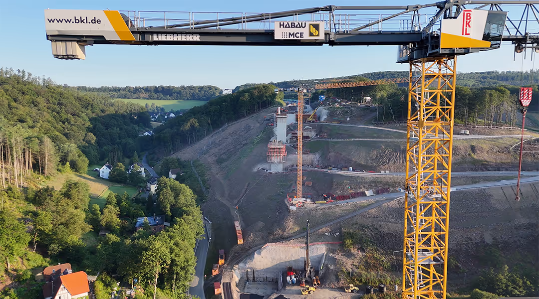 Nach dem Komplettabriss der bestehenden Rahmede Talbrücke ist eine der wichtigsten Verkehrsadern der deutschen A45 unterbrochen. Um diese Lücke schnellstmöglich zu schließen, ist die Fertigstellung des Ersatzneubaus in einer Rekordzeit von unter drei Jahren geplant.